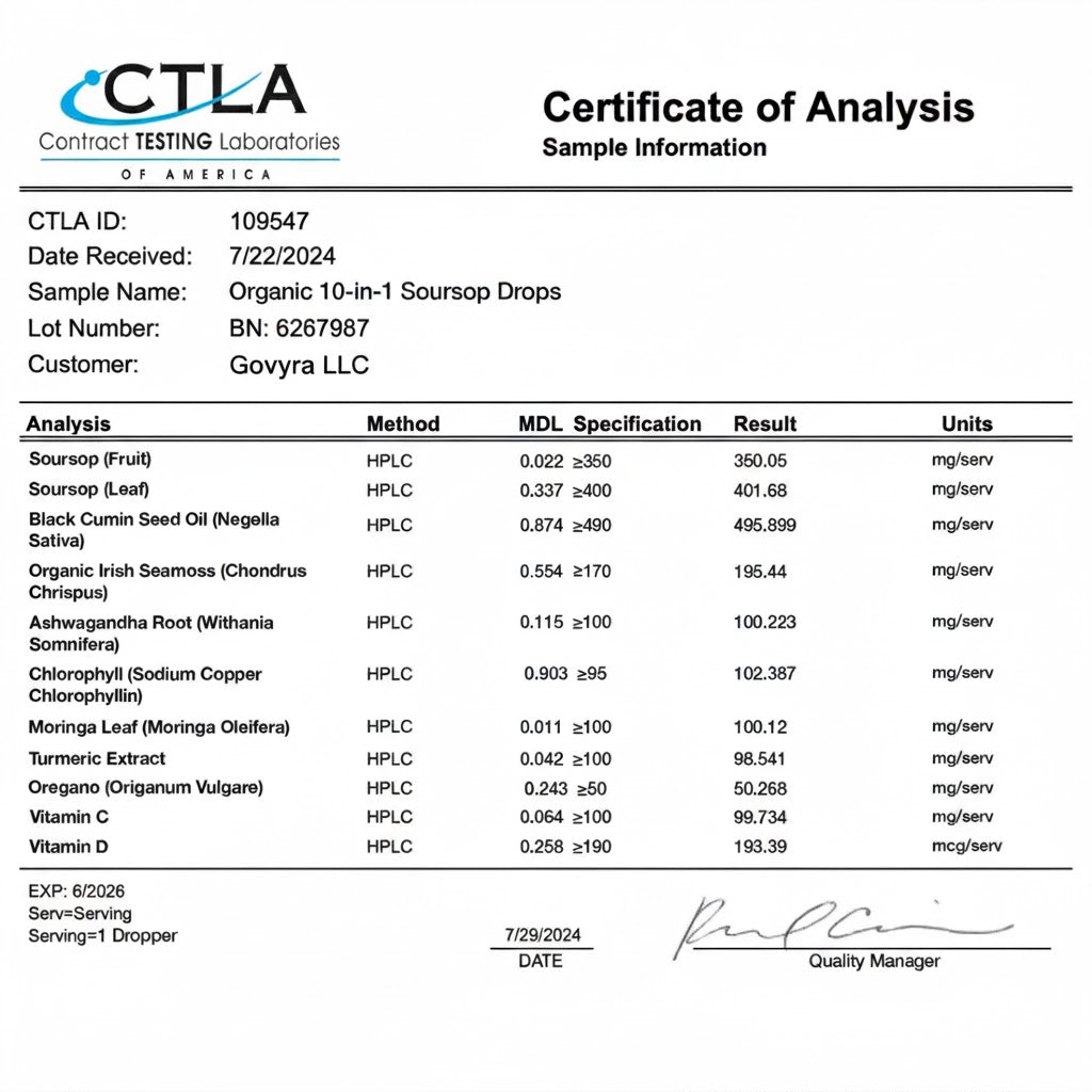 Vyxion 10-in-1 Soursop drops are meticulously formulated to support your overall health and wellness. Backed by clinical testing on over 1,200 participants, these potent drops deliver fast, noticeable results across multiple areas of wellbeing. Each drop combines the natural power of soursop with carefully selected ingredients to target 10 key benefits, helping you feel revitalized, energized, and balanced.